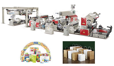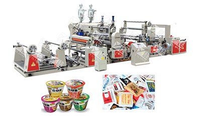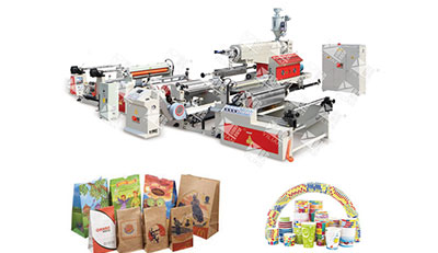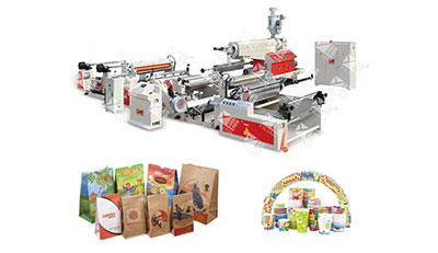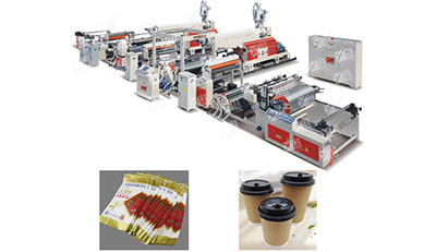 本系列设备以纸,塑膜,纺织布或铝箔为基材,通过流延,一次复合成二层,三层(夹心复合),广泛应用于食品包装,药品包装等各行业。如制作口杯,方便面碗,饲料包装袋,医用卫材,快餐盒,无纺布袋。