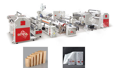 SJFM型双主机挤出淋膜复合机组,吸收国外先进技术,是目前国内一次完成双面淋膜工艺的先进机种,设备用于需要一次生产完成的双面涂塑纸,或多层的如牛奶盒、果汁盒、饮料盒等复合材料,是生产无菌包装材料的理想设备。